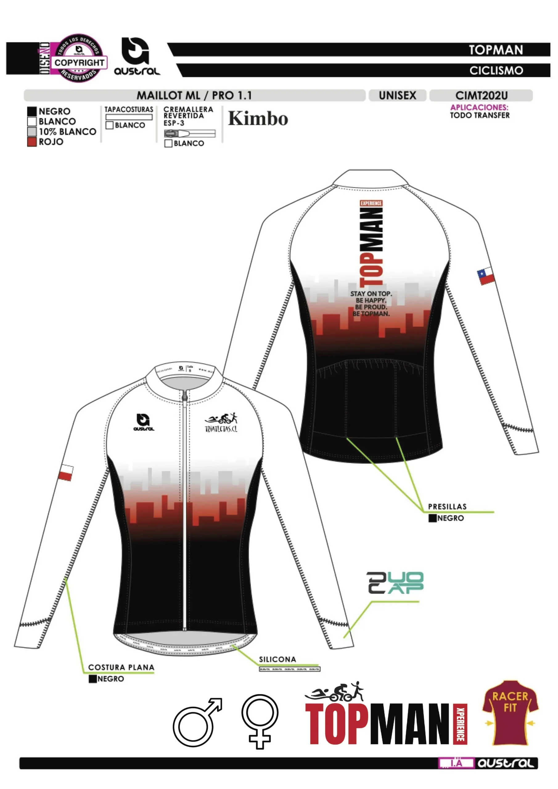 | Corte/Fit | RACER FIT (Unisex, manga larga) |