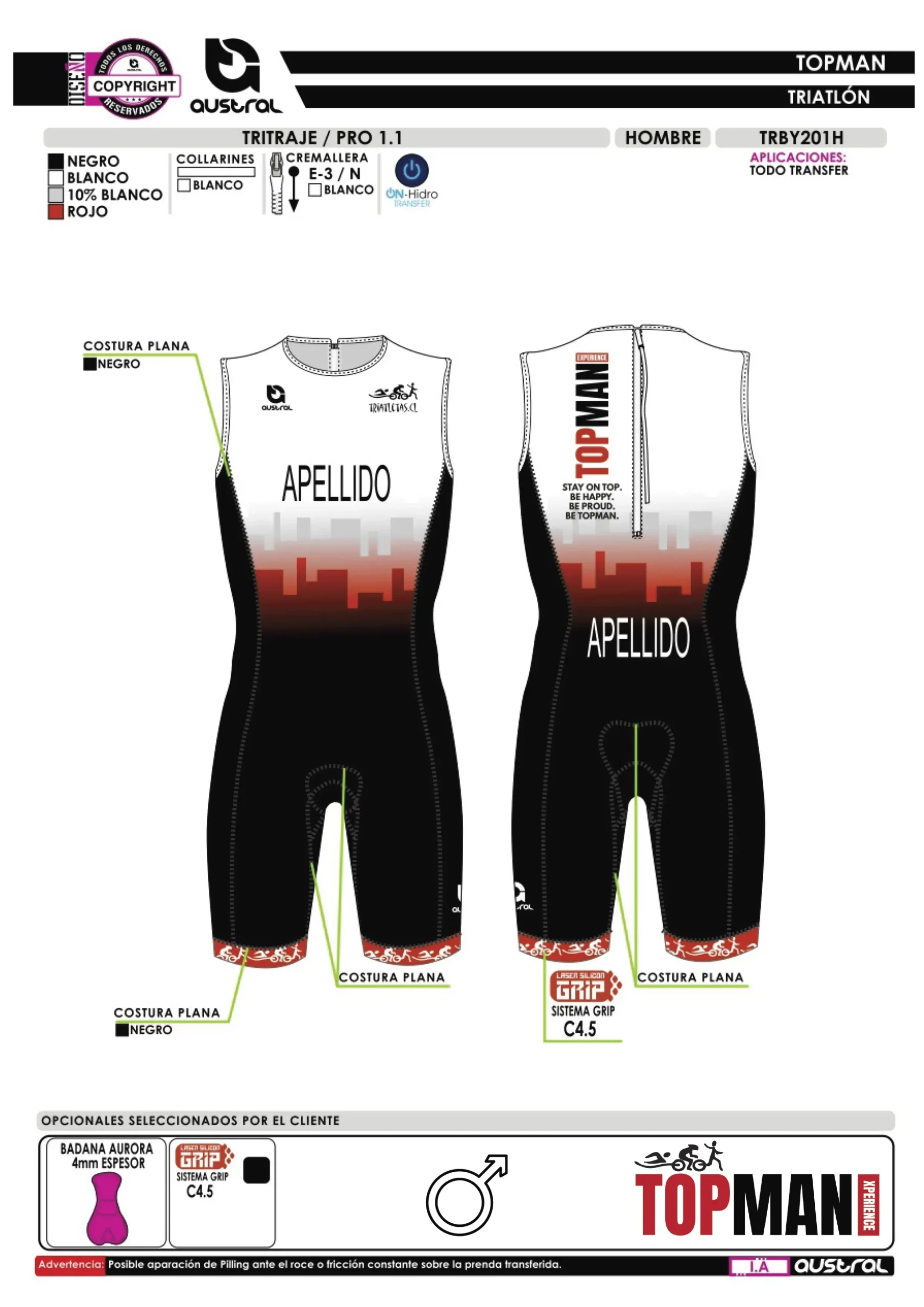 | Grip piernas | Sistema GRIP C4.5 (antideslizante) |