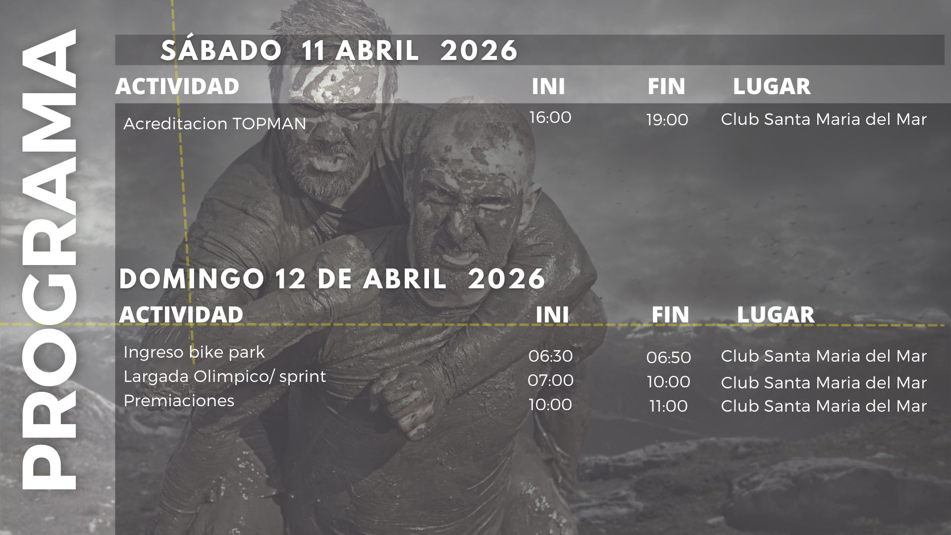 | Cuarto | Bike | 45 km. | 1:45:00 |